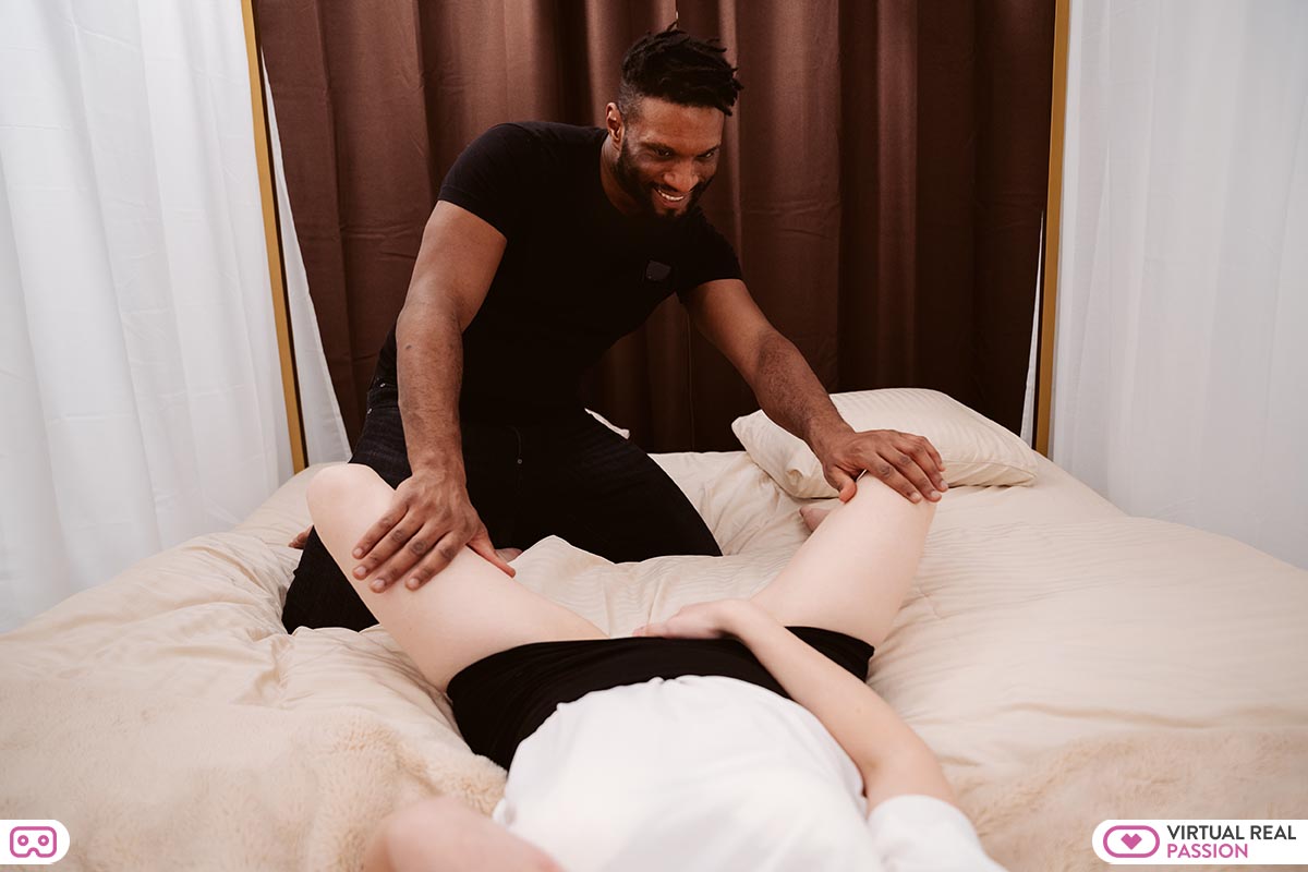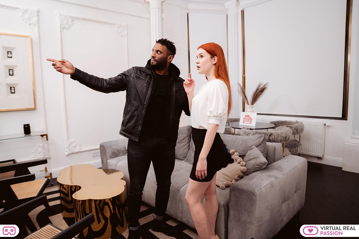 Sexy real estate agent Yves Morgan is showing you around a house. When you decide you want something, you get it – and you want this big time. We’re not talking about the house, we’re talking about his big black dick. You are getting a little hot and bothered thinking about what Yves is packing in his pants. You tell him you need to go into a seperate room and rest on your own for a few minutes. You need some sexual relief, and you start to masturbate your sopping wet pussy. Suddenly Yves walks in. Secretly, it’s what you were hoping for. You feign shock, but Yves is blown away by the sight of you near naked, playing with your wet pussy. Now it’s even wetter, and it will get wetter still. Because Yves is now approaching you with a look of pure lust on his eyes. He spreads your legs, and starts to lick at your juicy love hole…