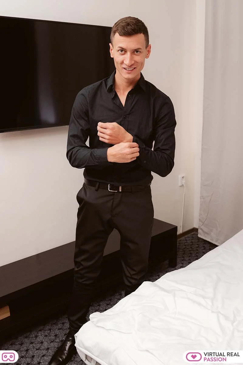 You have some time to kill with your elegantly dressed lover Charlie Dean, as you wait around in your hotel room for a special evening out. You try playing chess, but it doesn’t excite you. Charlie has a much better idea. While still dressed in his smart suit, he takes off your panties and starts to lick you out. His tender licks turn your pussy into a sea of love juices, as you eagerly spread your legs and let the smooth young man gently make love to you.